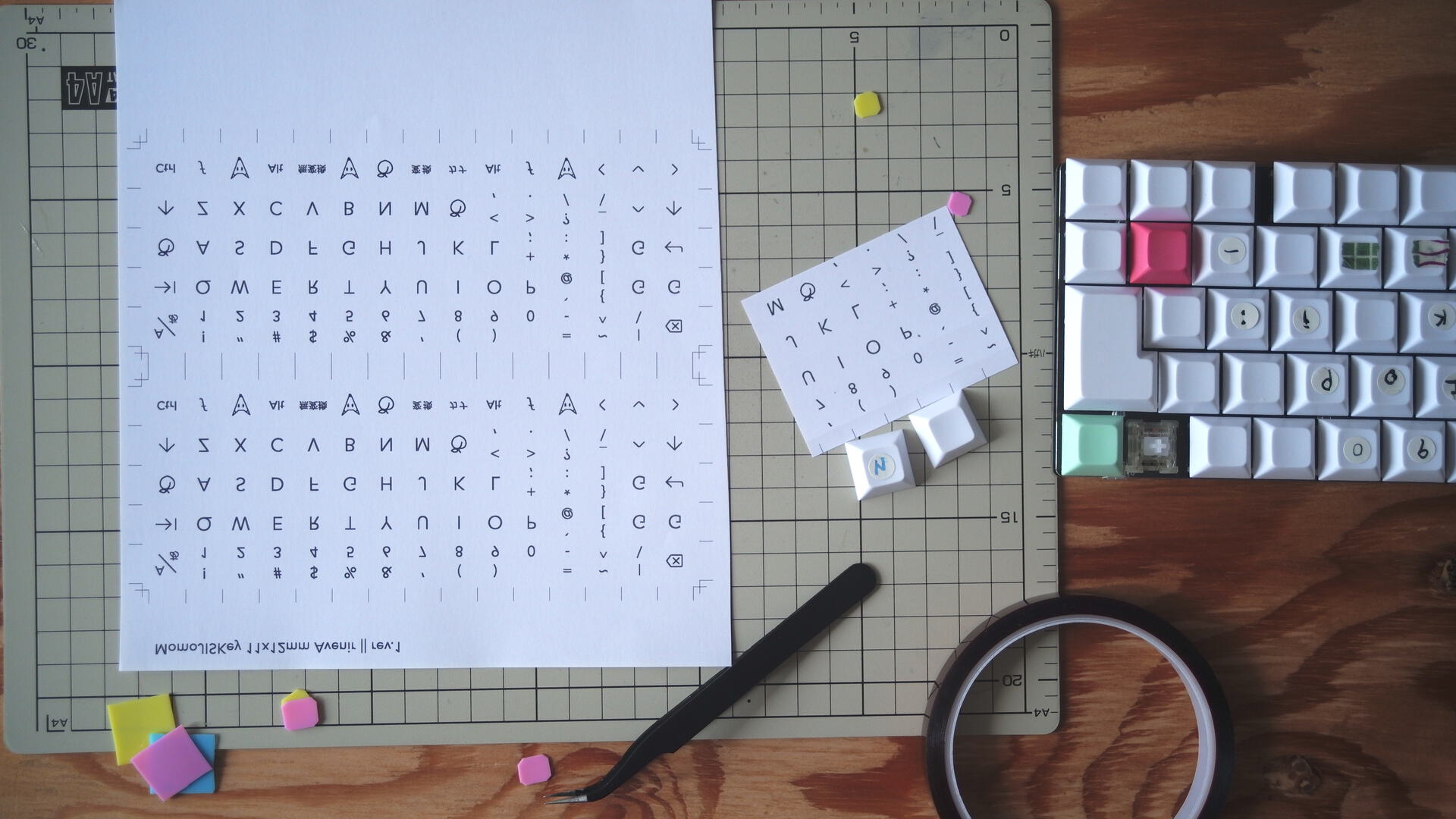 今回、sphh jp という日本語配列の分割キーボードキットを使ったのですが、いかんせん既成のキートップだと選択肢が少なく納得のいくデザインがなかったので、せっかくならと刻印も「自作」することにしました。結論からいうと、かなり時間と体力を使ったうえに、良くも悪くも手作り感のある仕上がりになりました。万人にはオススメできませんが、ぼくは満足しています。