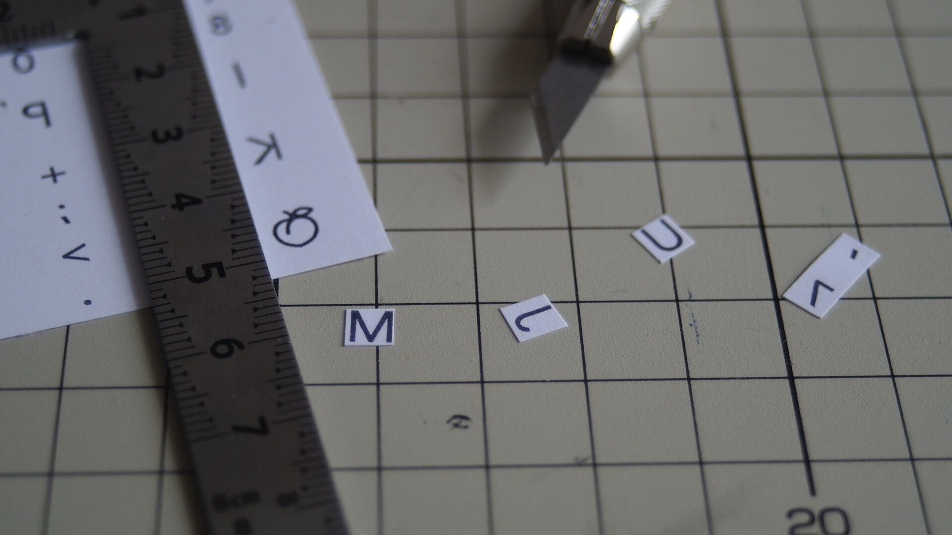 まず用紙を文字ギリギリまで切り出します。汚れも転写されるので、指で触りすぎないほうがいいかもしれません。