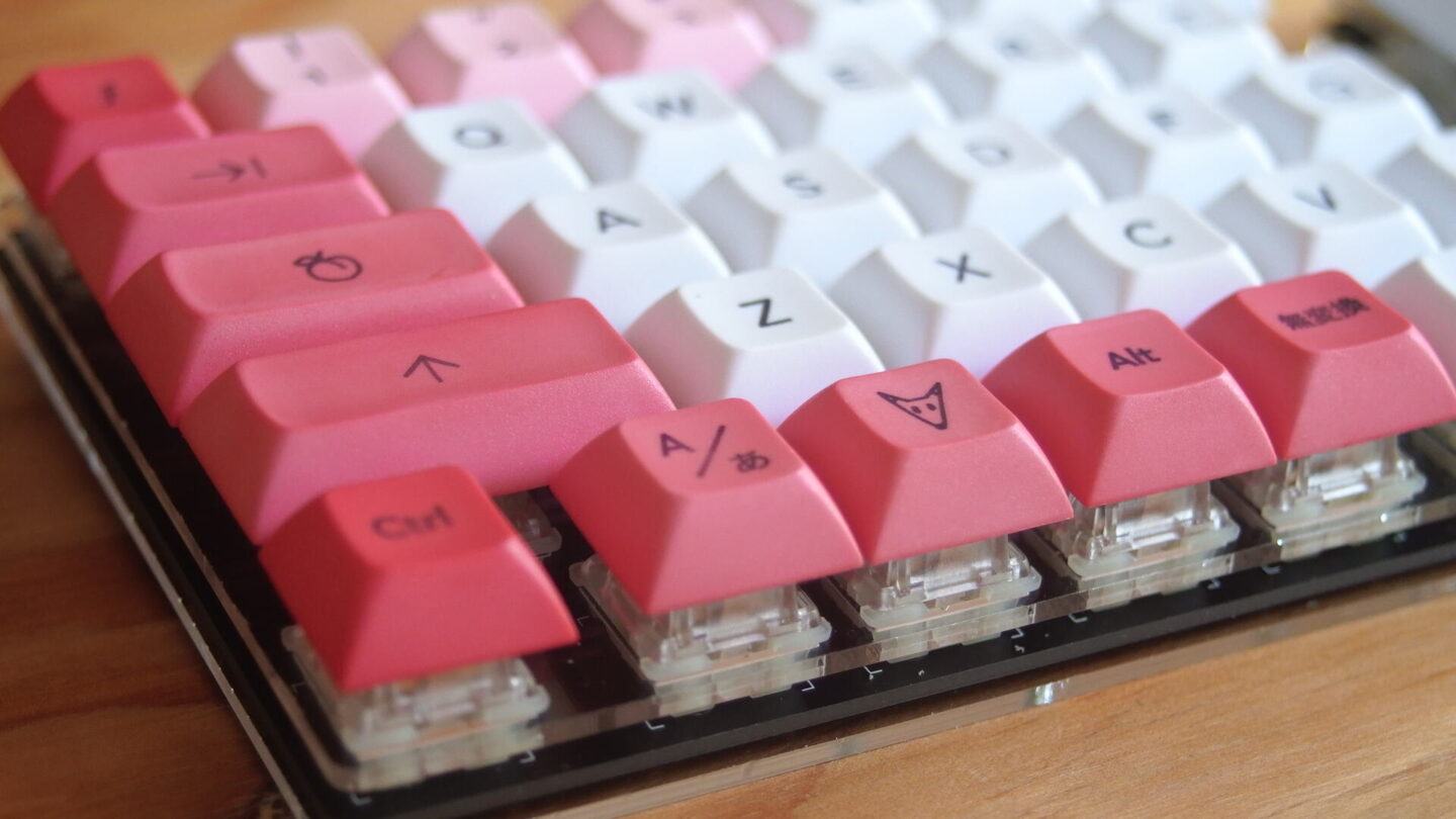 ただShiftやEnterなどの特殊形状で色がついているものがなかったので、白のキートップを自分で染めることにしました。こちらについても後述します。
