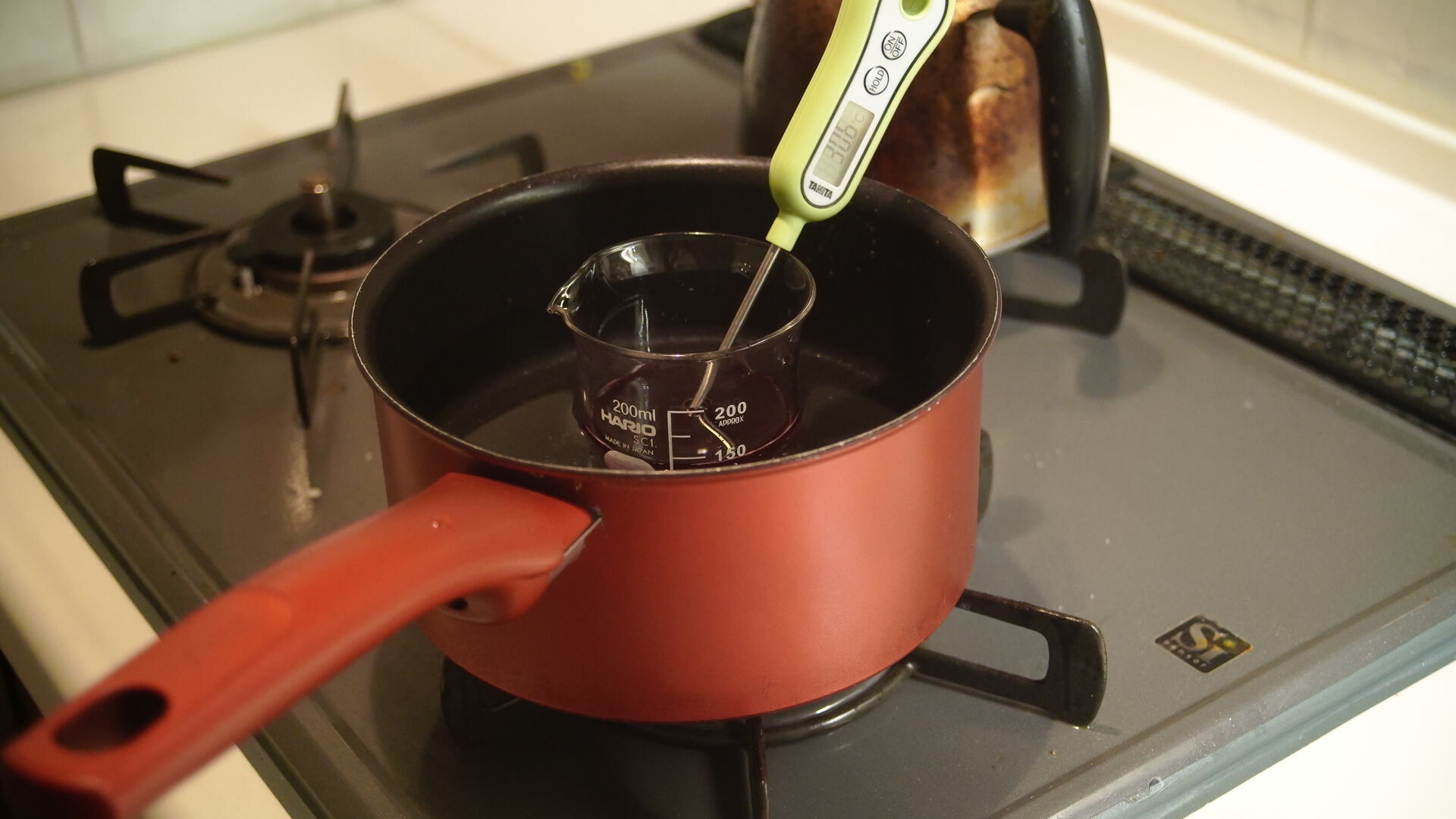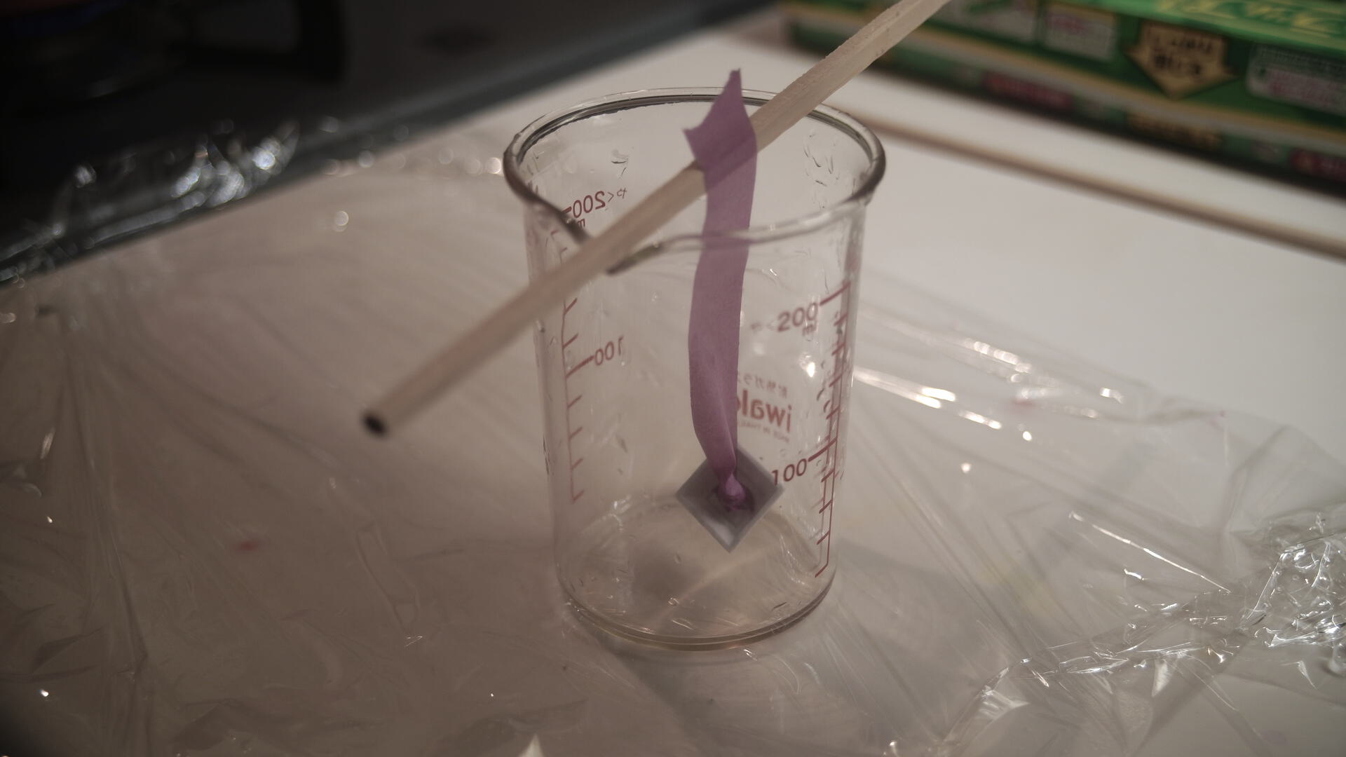 - 染液を目的の温度 +αに加熱し、キーが浮かないようそーっと流し込む(多分これが難しい)