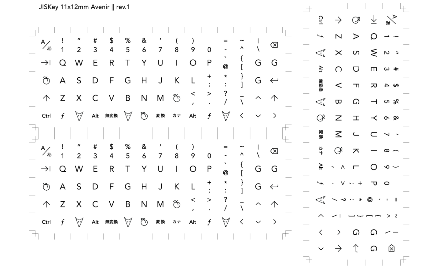 Shift, Enterなどにはできるだけ記号を使いました。Material Symbols and Iconsから拝借。記号ではありませんが、Fnが関数の “ƒ” としたところが気に入っています。
