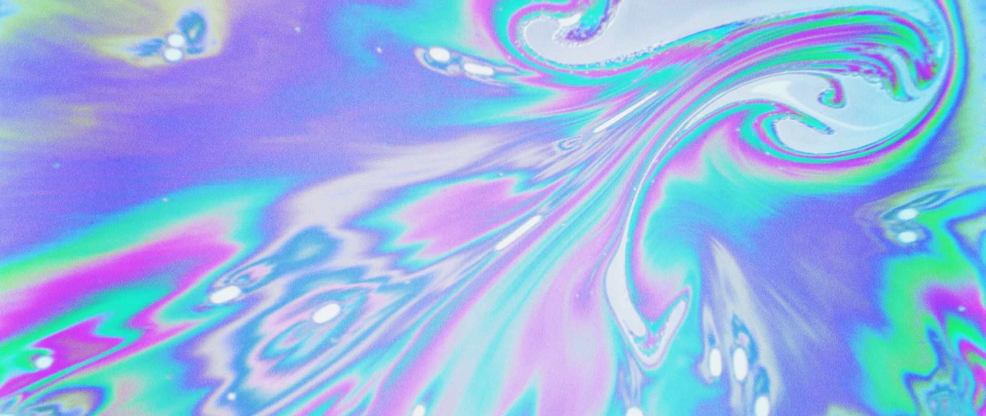水たまりに張った油膜のあの構造色。絵具使ったマーブル表現や、シャボン液の表面のテクスチャ感はわりかし多いですが、ガソリンは特に水と交じり合ったりで複雑でグロテスクな模様が良かったので採用しました。Davy EvansがThe xxのアートワークでやってまいました。