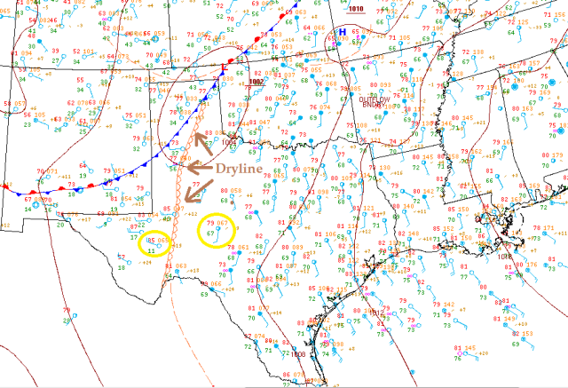というのは置いといて、その天気図に見慣れない記号があるとさらに興奮する。小学生の頃百科事典に「地吹雪」や「砂塵嵐」のマークがあるのを知ってやたら嬉しかったっけ。いつ使うんよ、と。そしてアメリカ大陸や北アフリカの天気図にはドライラインなる前線があるらしい。乾燥空気と湿潤空気は暖気と寒気同様に混ざりづらく、その湿度の境目が前線となって現れるとのこと。湿潤気候の日本にいる限りはお目にふれることのない記号だろうなぁ。